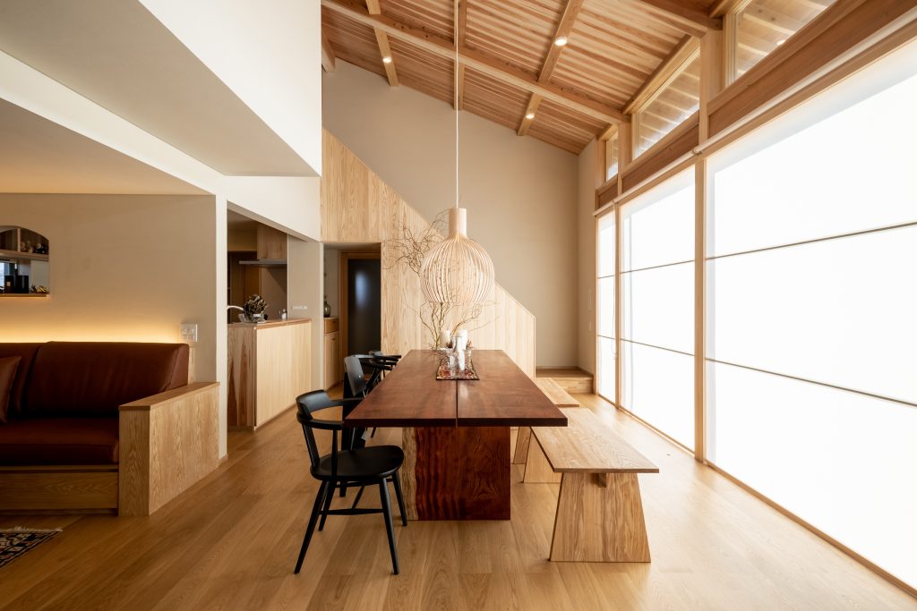 ・LDKには、コンセプトである「家族団らん」を感じられる、全員で囲める大きなダイニングテーブル。